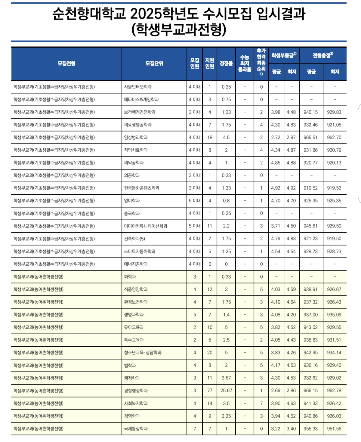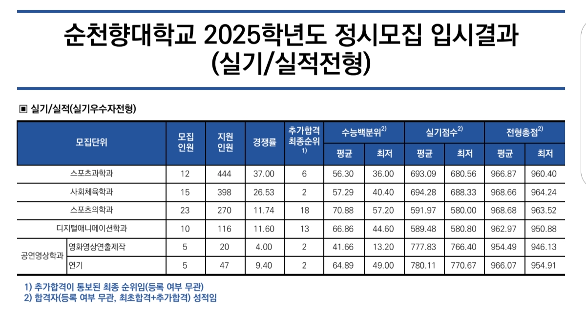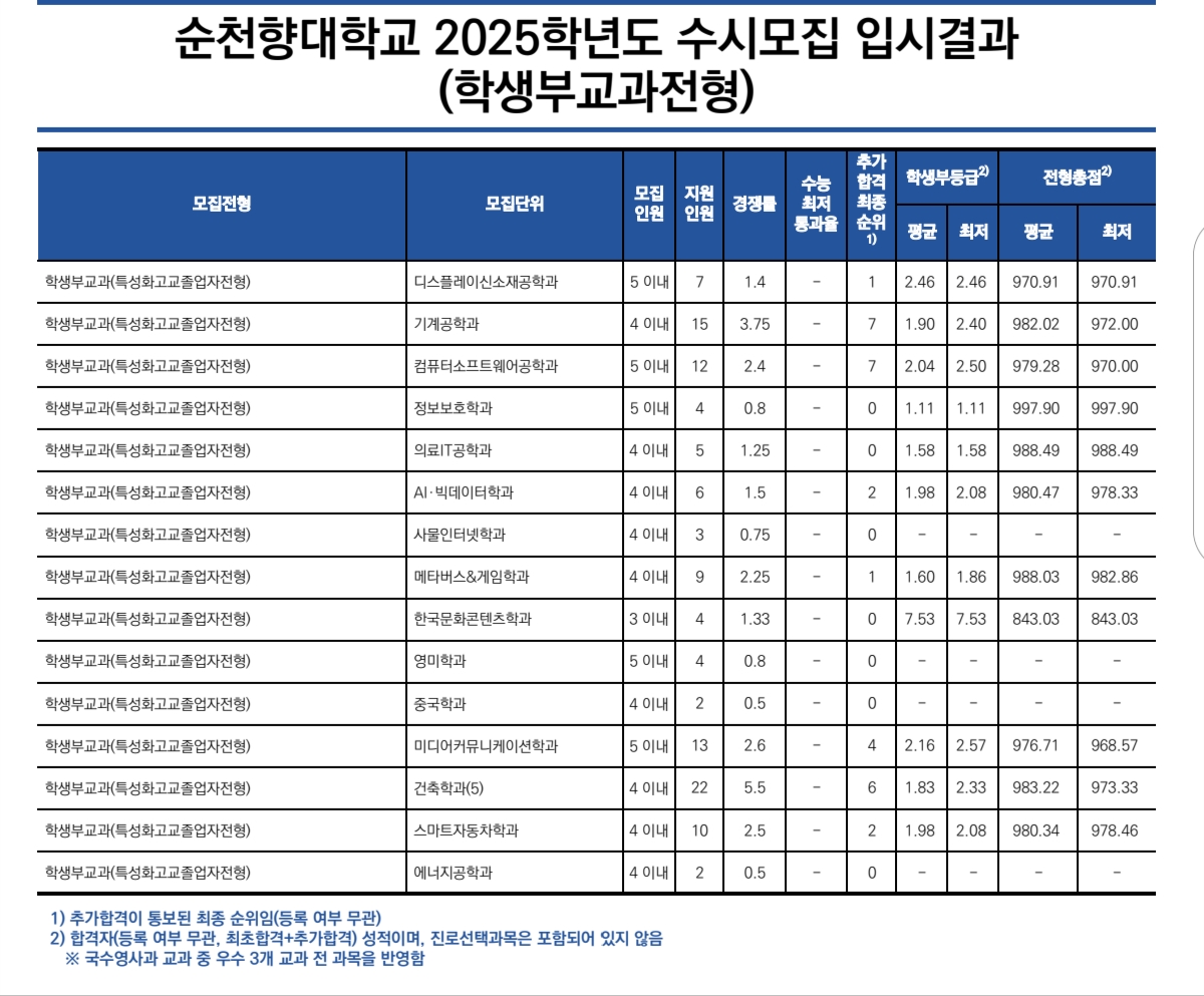 2025 순천향대 수시 및 정시 입시결과(커트라인)