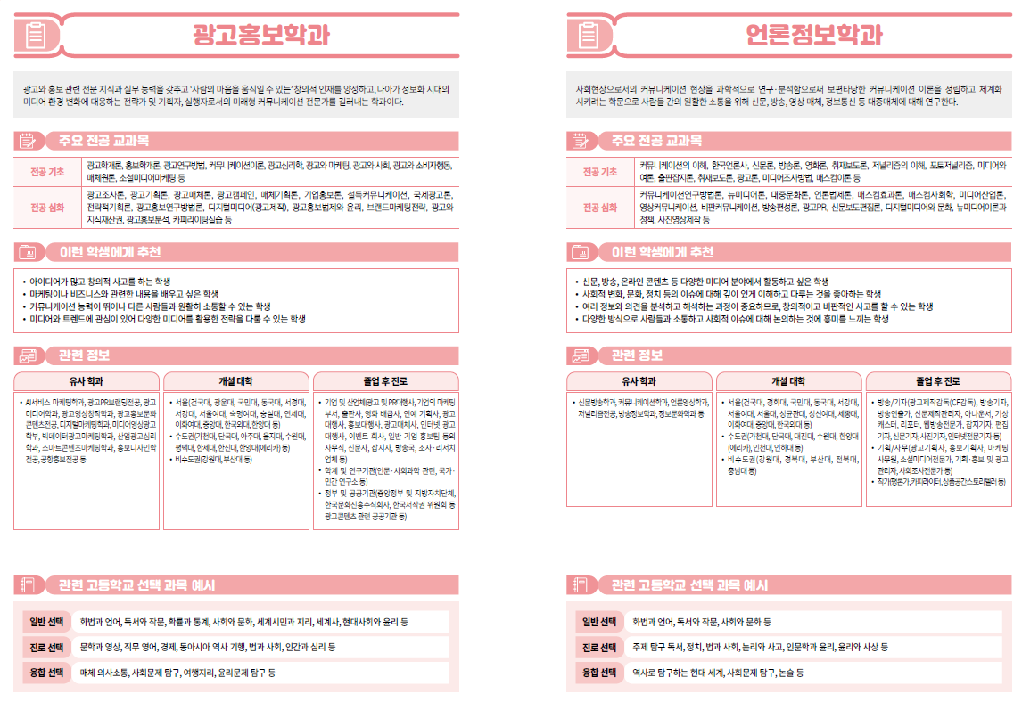2022개정 고등학교 선택과목 광고,언론,정보,사회과학계열-광고홍보,언론정보,미디어,국제,사회,사회복지,심리학,아동,지리,항공서비스,정치외교