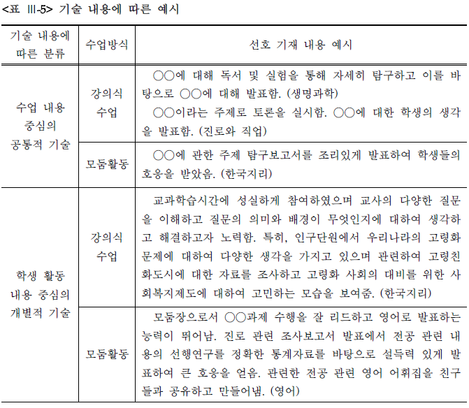 ☞첨부자료 : 2017학년도 중/고등학교 학교생활기록부 전과목 기재 예시 - 교육부