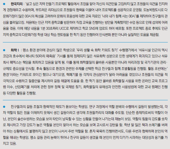 □ 세부능력 및 특기사항(세특) 예시