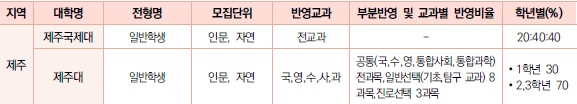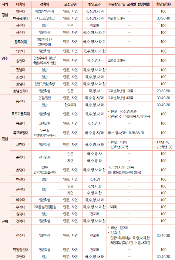 2022학년도 학생부교과전형 교과 반영방법 및 학년별 반영 비율-전국대학