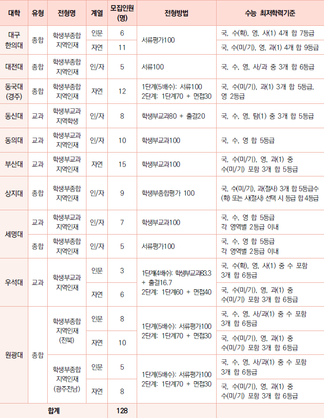 □ 한의예과 수시 지역인재 전형 전형방법 및 수능 최저학력기준