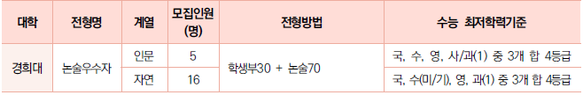 □ 한의예과 수시 논술전형(경희대) 전형방법 및 수능 최저학력기준