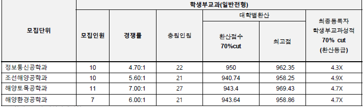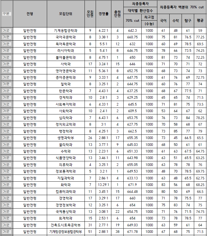 경상대학교 입시결과 - 수시등급. 정시 커트라인