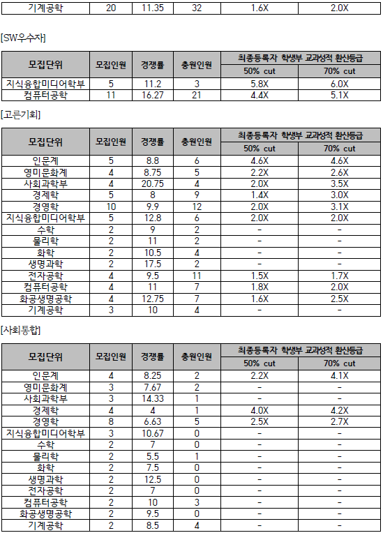 서강대학교 입시결과 - 수시등급. 정시 커트라인