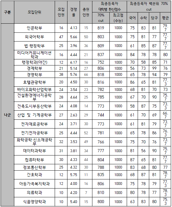 수원대학교 입시결과 - 수시등급. 정시 커트라인