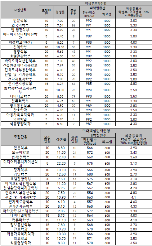 (2) 학생부교과전형/ 미래핵심인재전형