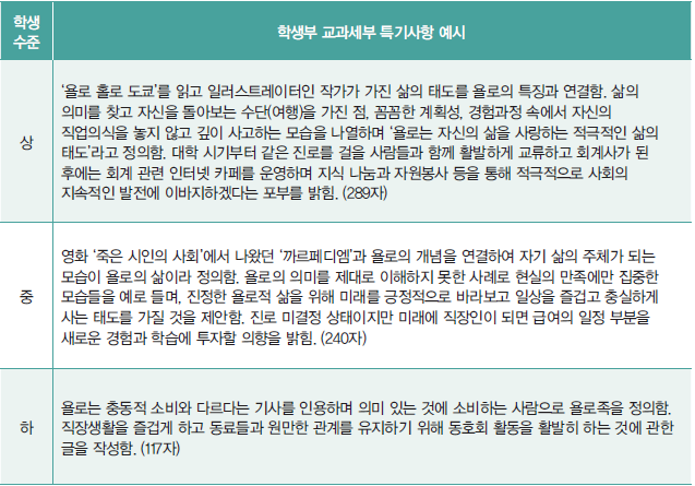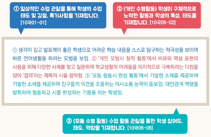 국어 세부능력 및 특기사항(세특) 예시