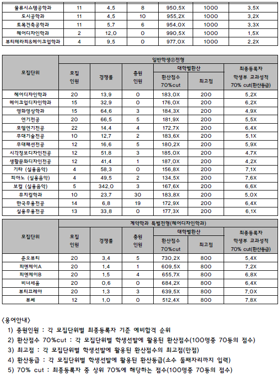 서경대학교 2021학년도 입시결과-수시등급. 정시 커트라인