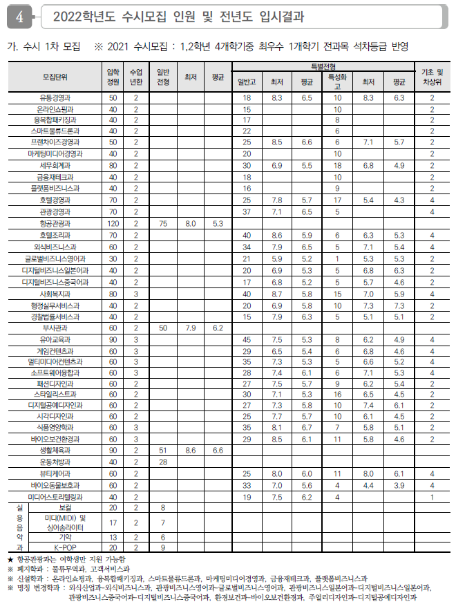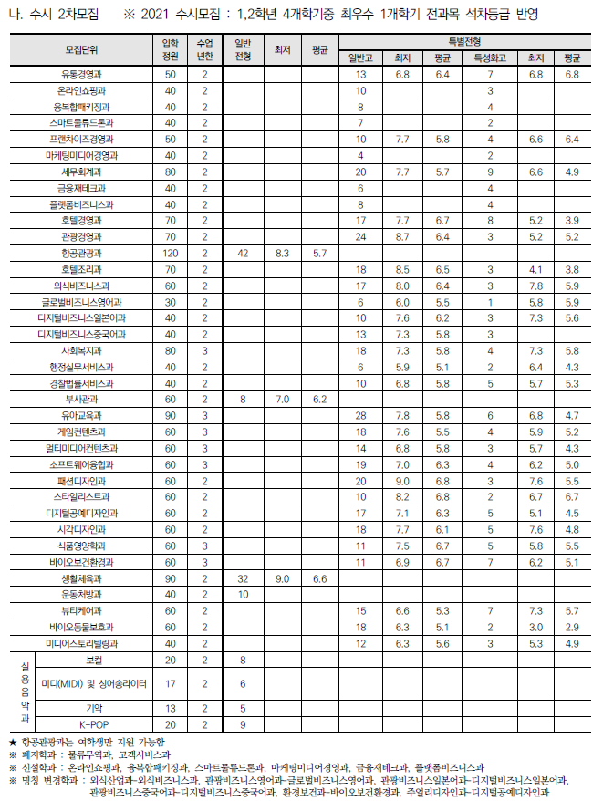 장안대학교 2022 수시전형 모집요강 및 전년도 수시 입시결과(수시등급)