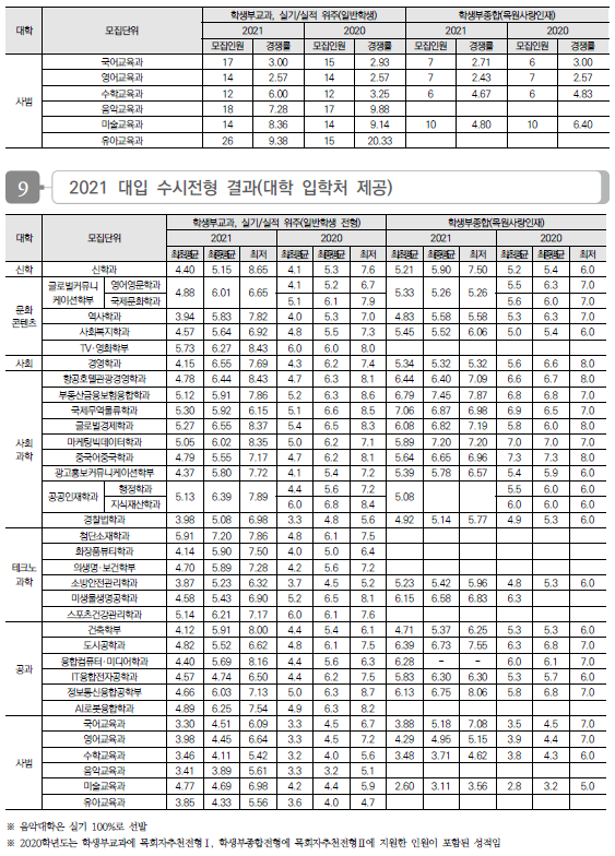 목원대학교 2022학년도 수시전형 방법, 모집요강 및 전년도 수시 입시결과(수시등급)