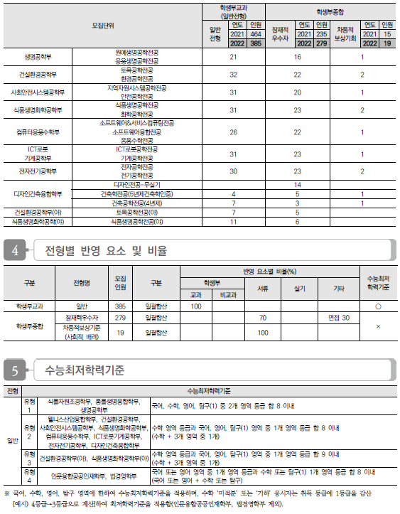 한경대학교 2022학년도 수시전형 방법, 모집요강 및 전년도 수시 입시결과(수시등급)
