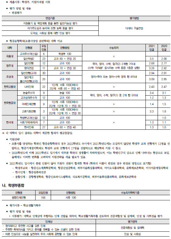 한서대학교 2022학년도 수시전형 방법, 모집요강 및 전년도 수시 입시결과(수시등급)