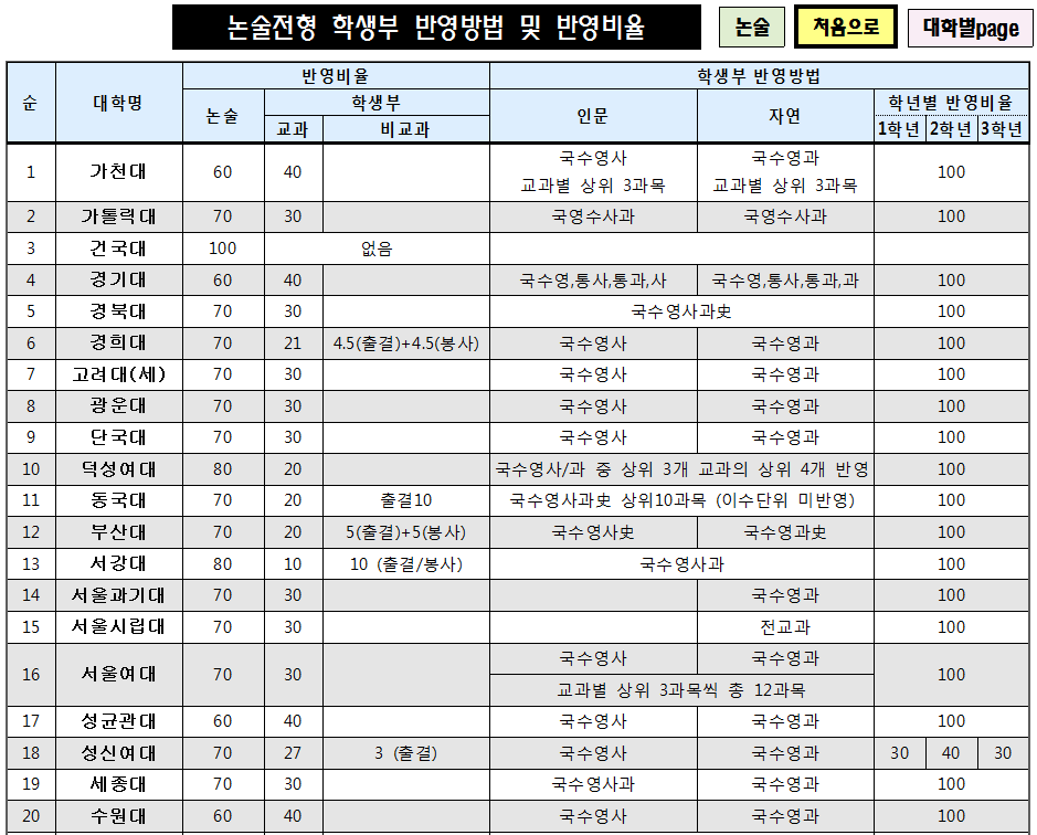 2022학년도 대학별 논술전형 - 일정, 수능최저등급, 학생부 반영, 출제유형