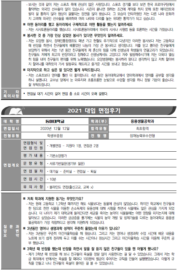 2022학년도 수시 면접 대비 전년도 기출문제 -③ 동아대, 삼육대