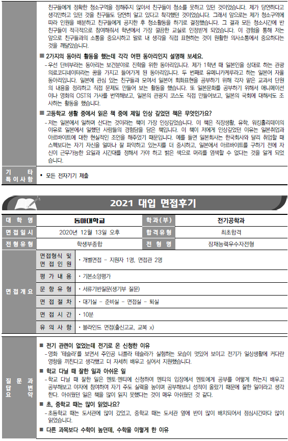 ※ 면접 기출문항은 각 대학 입학처 홈페이지 또는 각 시도교육청 면접자료 참조