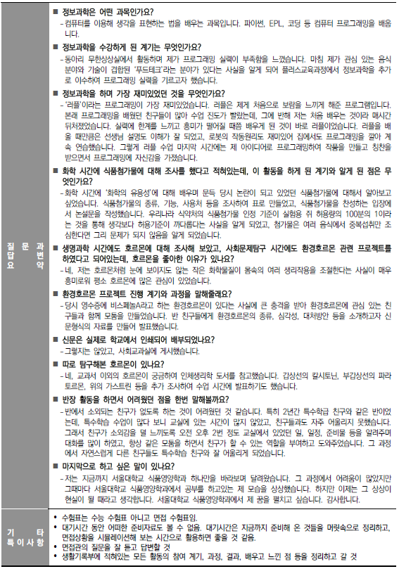 ※ 면접 기출문항은 각 대학 입학처 홈페이지 또는 각 시도교육청 면접자료 참조