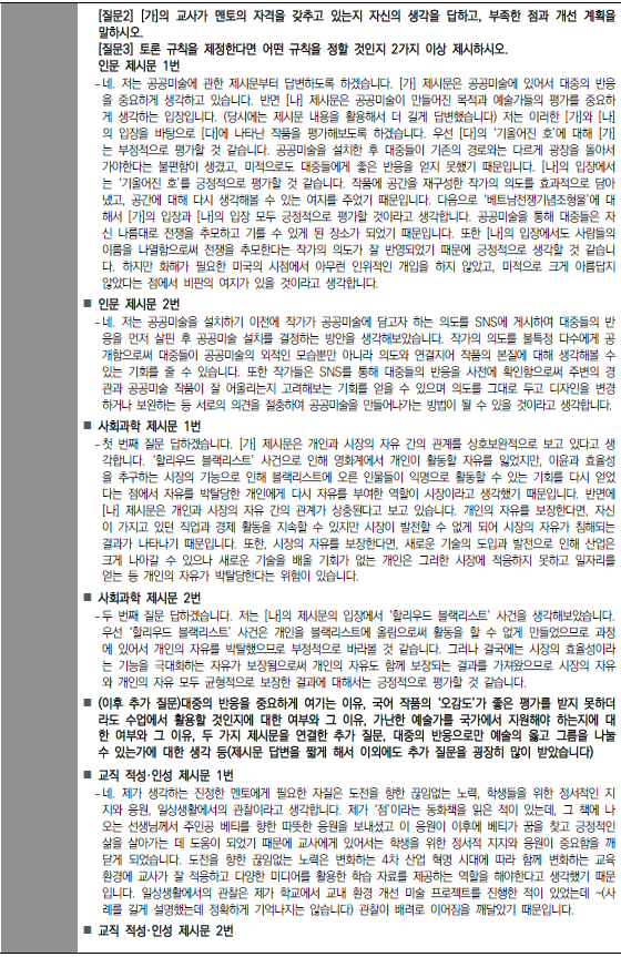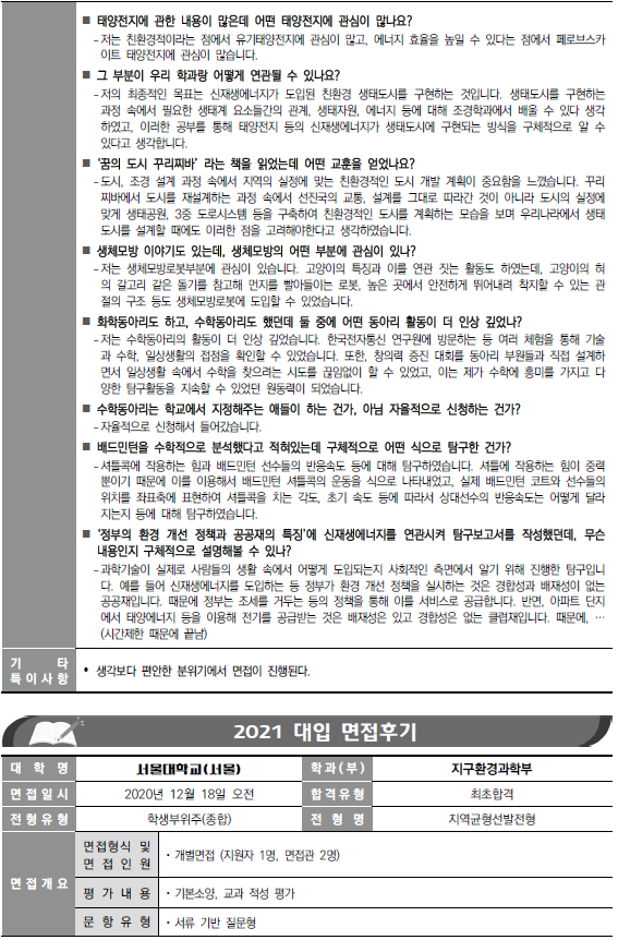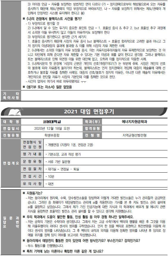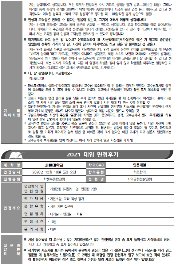2022학년도 수시 면접 대비 전년도 기출문제 -③ 서울대