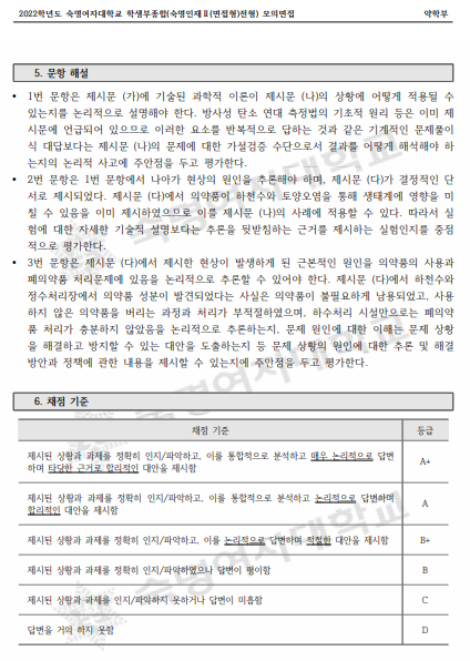 2022학년도 수시 모의면접 - 숙명여대(약학부)