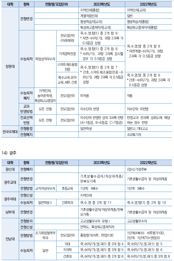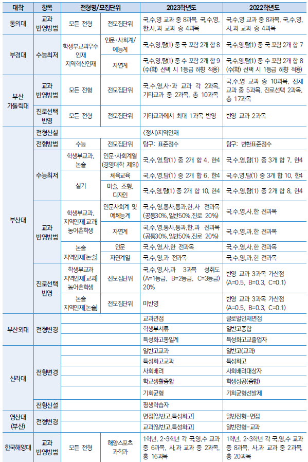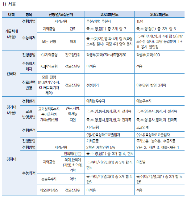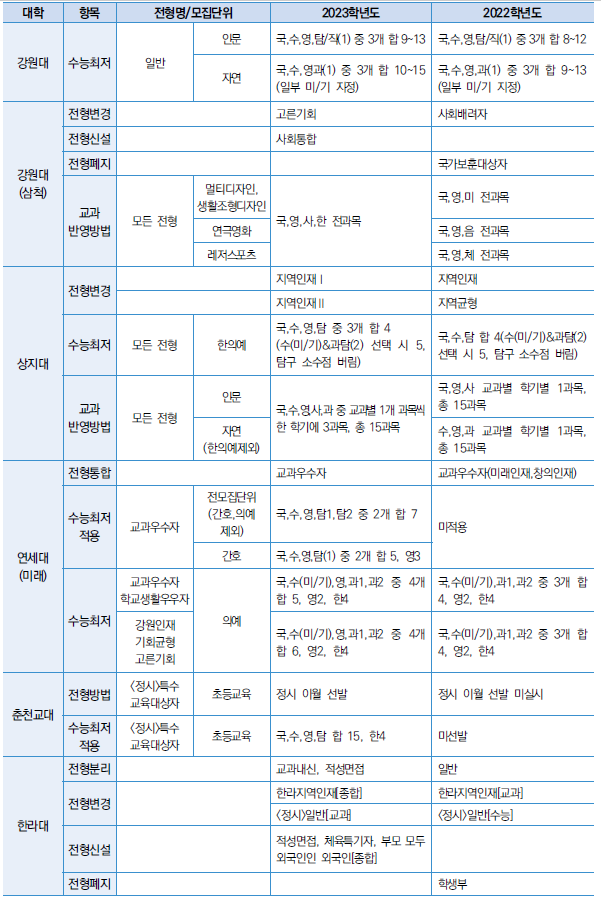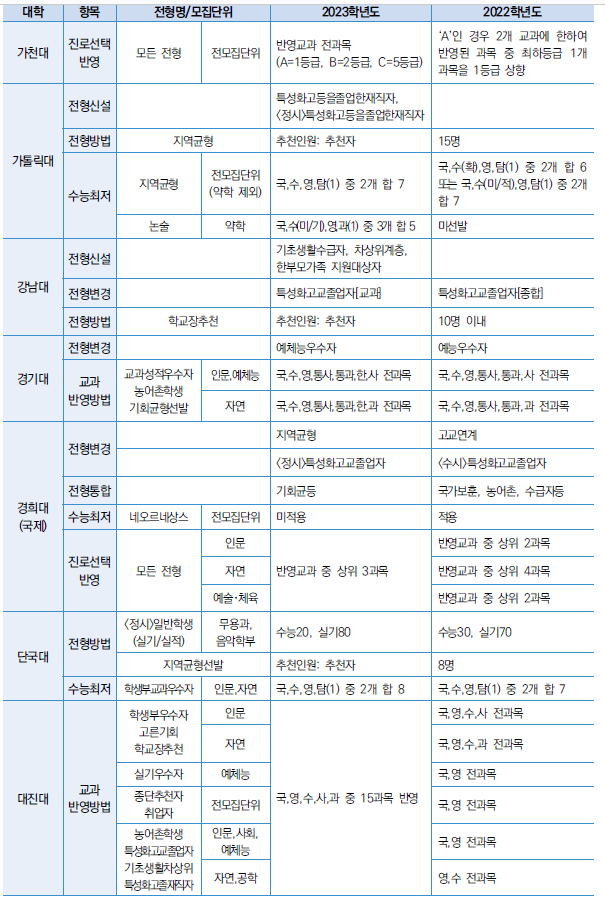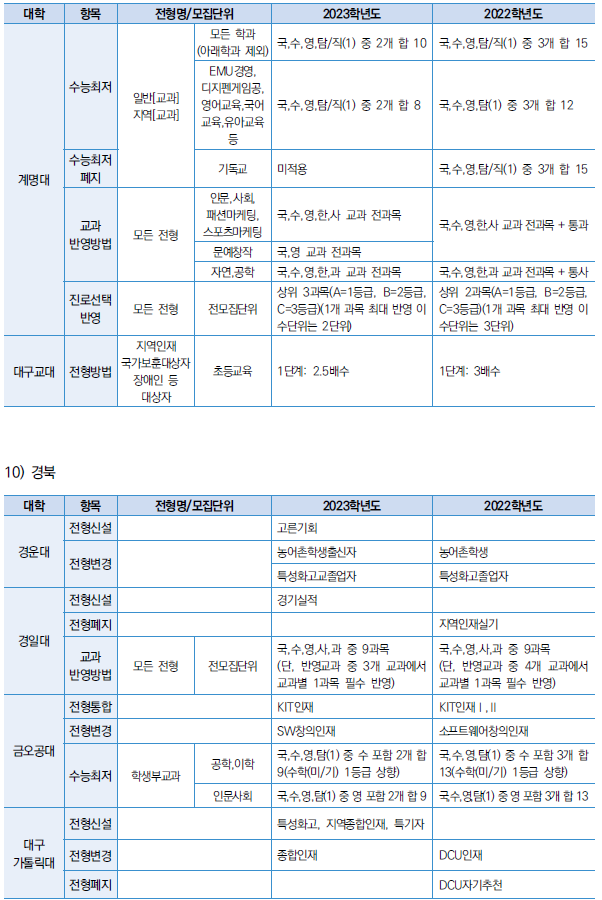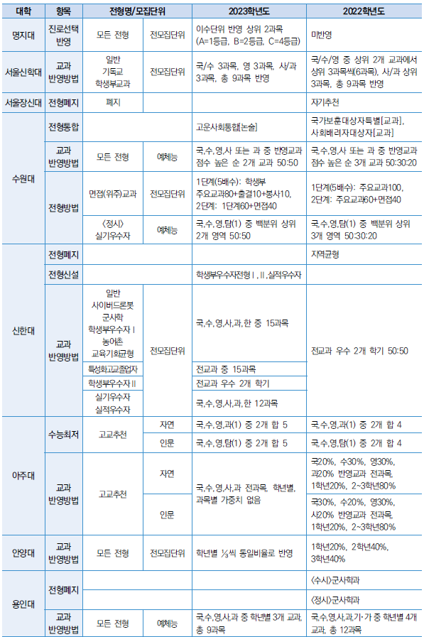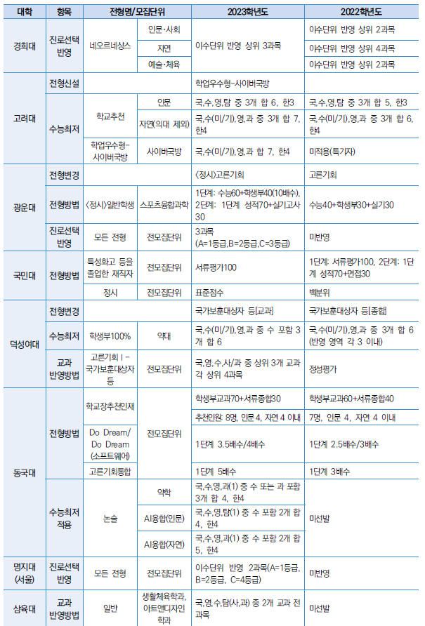 □ 2023학년도 대학 수능최저 및 반영방법
