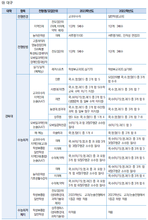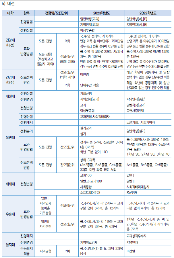 2023학년도 대입전형 - 대입일정, 모집인원, 수능최저, 교과반영 방법