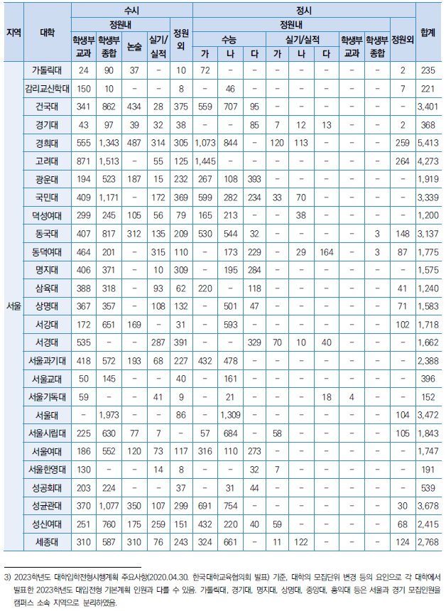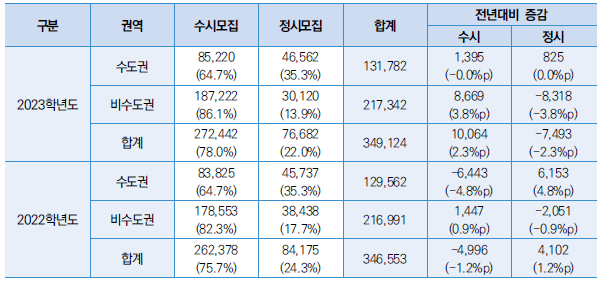 □ 2023학년도 대입 모집인원