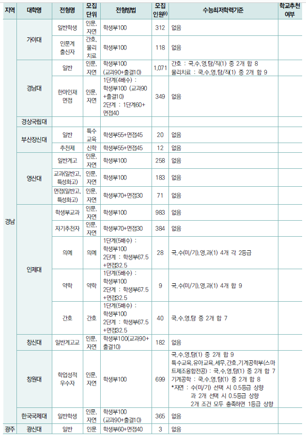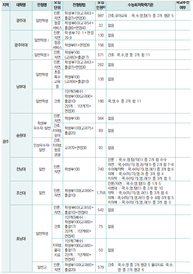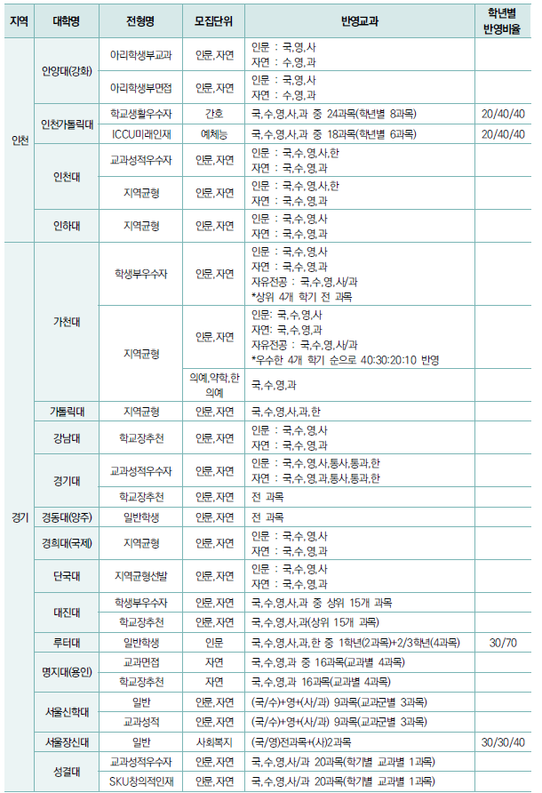 - 교과성적의 경우 주로 3학년 1학기까지 성적을 활용.