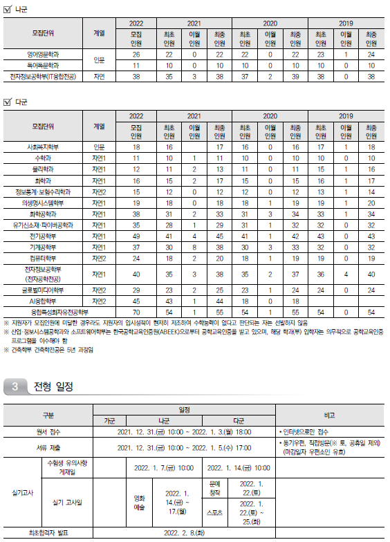 2022학년도 순천대학교/ 순천향대학교/ 숭실대학교 정시 모집요강 및 전년도 정시 커트라인