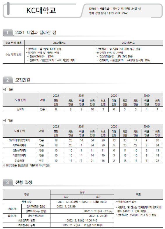 2022학년도 충남대학교/ 충북대학교/ KC대학교 정시 모집요강 및 전년도 정시 커트라인