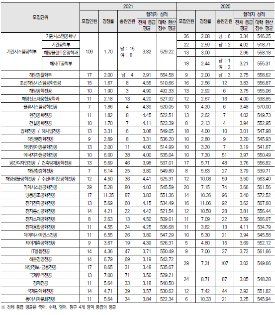 2022학년도 한국외국어대학교/ 한국항공대학교/ 한국해양대학교 정시 모집요강 및 전년도 정시 커트라인