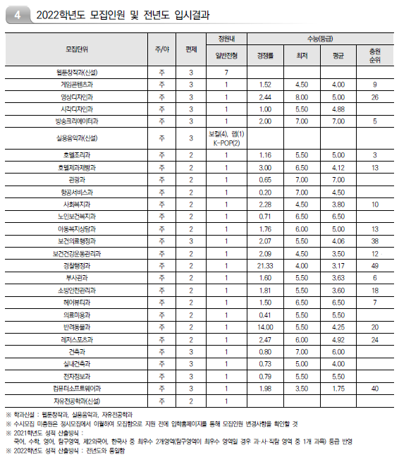 2022학년도 동아방송대/ 동원대/ 두원공과대/ 부천대/ 서영대(파주)/ 서울예술대 정시 모집요강 및 전년도 입시결과(정시 커트라인)