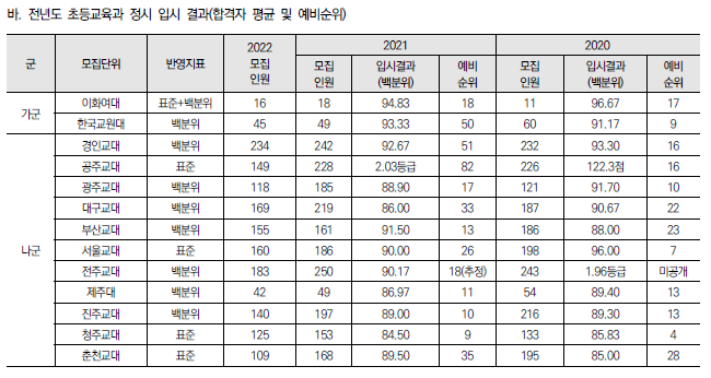 2022학년도 교대, 초등교육과 정시 모집요강 및 전년도 입시결과( 정시 커트라인)