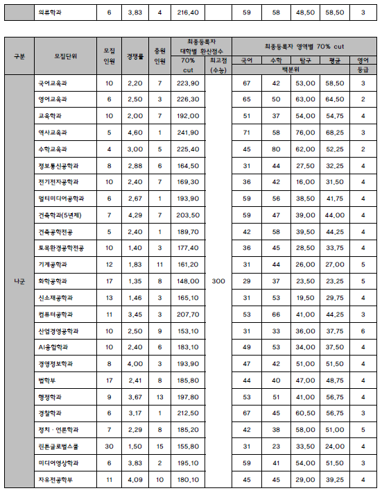 수시 정시 입시결과