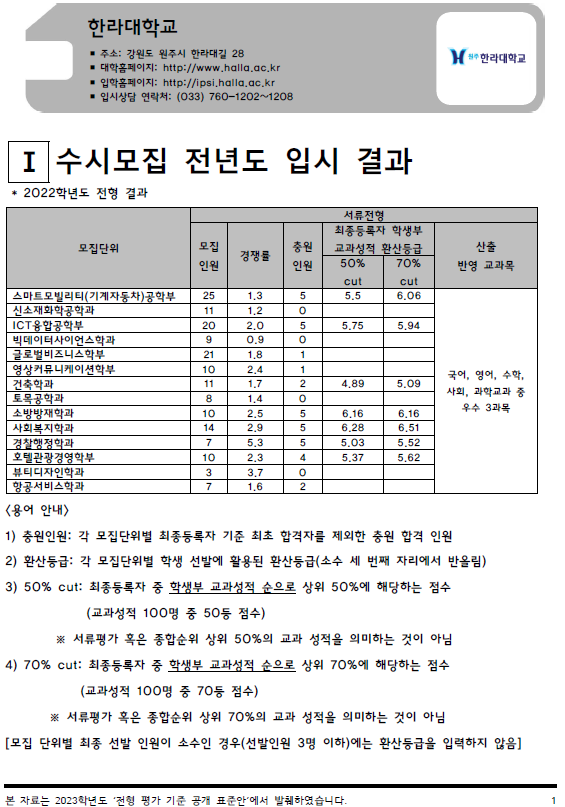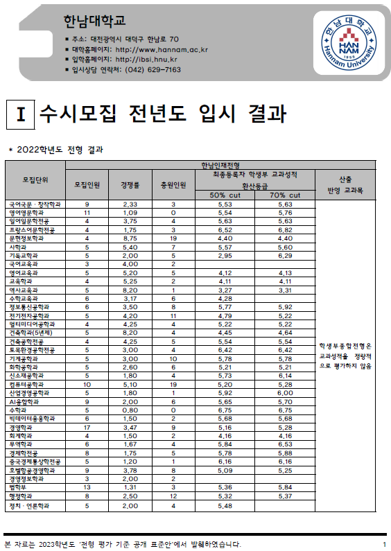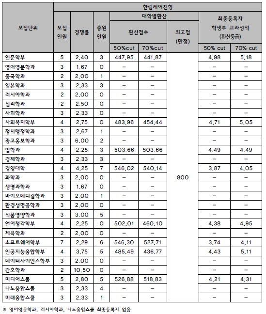 2022학년도 한남대, 한림대, 한동대, 한라대 - 수시, 정시 입시결과 (커트라인)